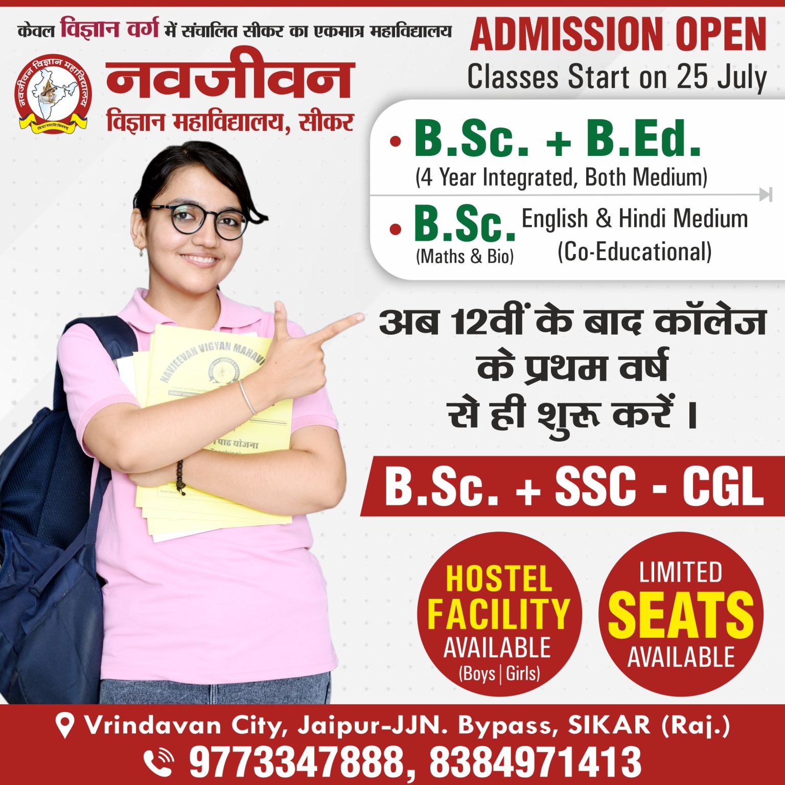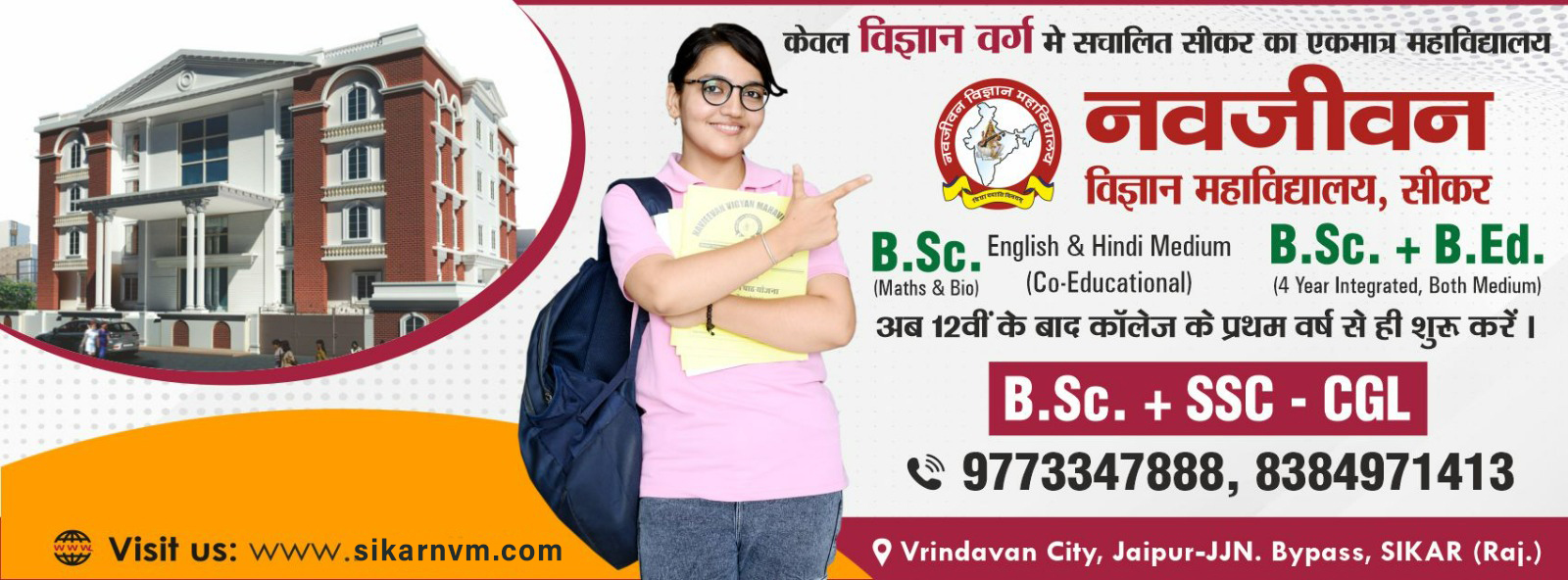 Navjeevan Science College, is Established in 2017, a unit of Navjeevan group of education, Sikar B. Sc. B.Ed. IV Year Integrated Course is more than a college. It is an Institute with the ancient tradition of hard work, creativity, and success. Faculties and students strive to give their best to curricular, co-curricular, and extracurricular activities year after year.Navjeevan offers a balanced and healthy mix of traditional qualitative teaching and the latest methodologies. Cultural traditions and modernity work together to serve the best quality of higher education.